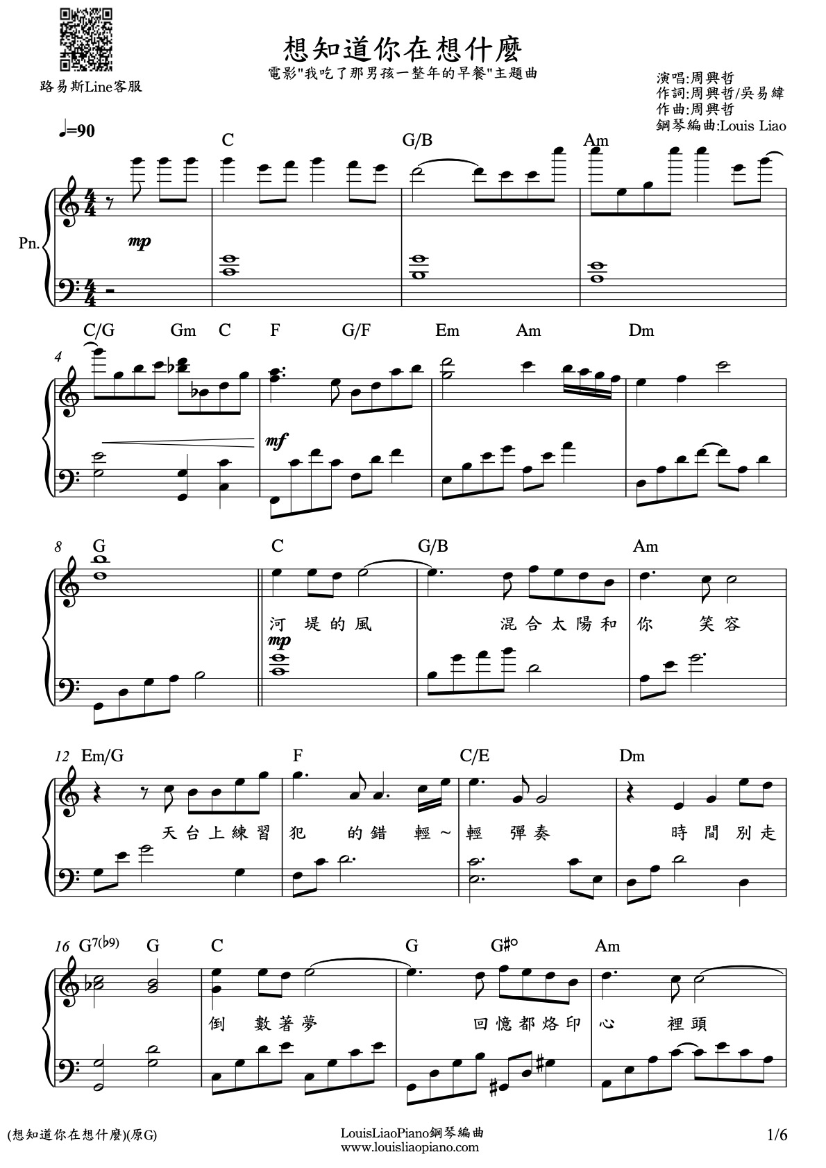 樂譜標記 英文和弦 與 原曲歌詞(中文),並包含兩種版本: